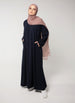 Modern and chic – this abaya design addresses current fashion trends and holds true to the modesty standards for the Muslim woman that will not compromise on quality, or style. Made from good quality Polyester material, this design comes with a hooked neckline and pockets.